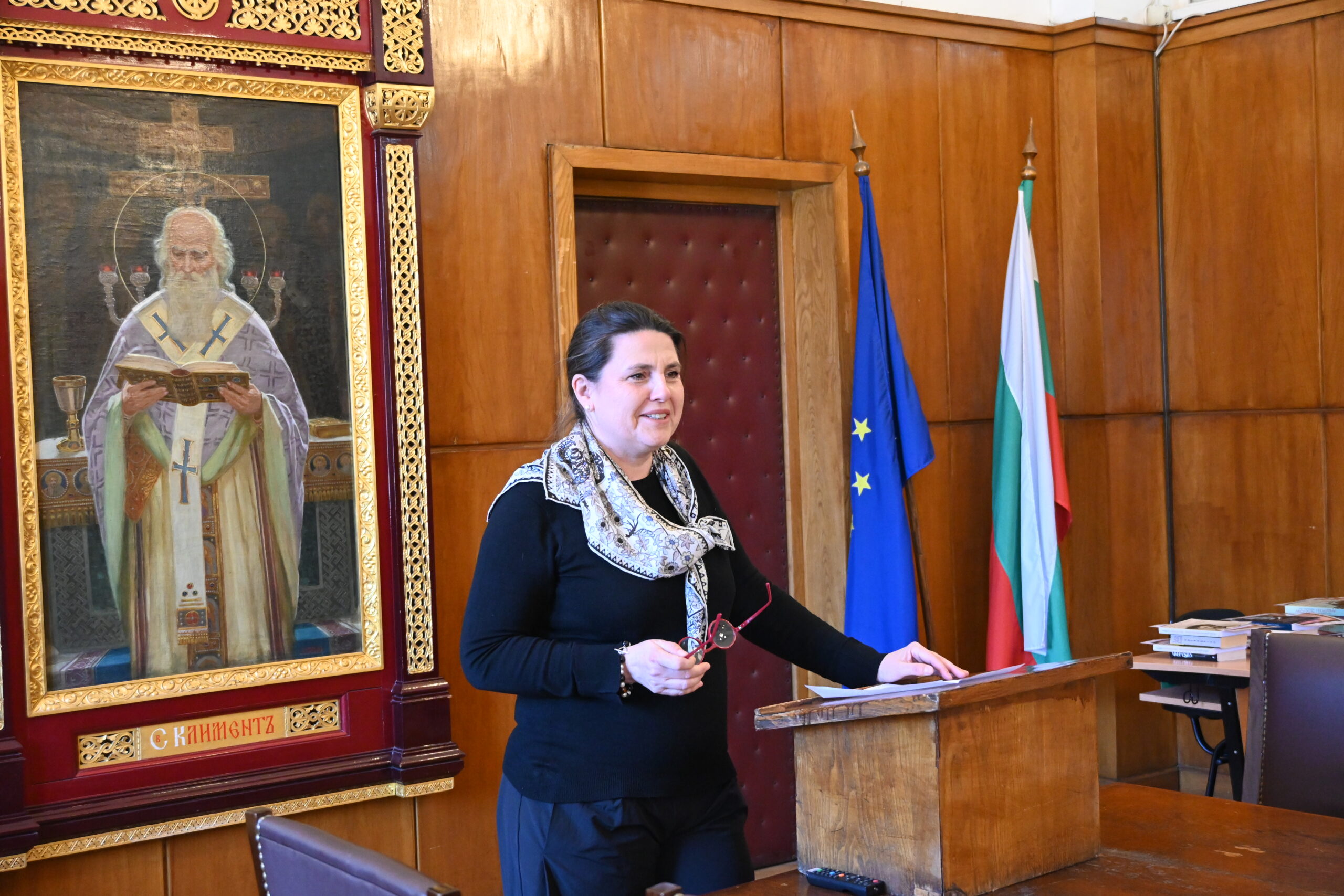 Събитието бе открито от гл. ас. д-р Надежда Михайлова, ръководител на специалността, която приветства участниците в конкурса, както и припомни някои факти, свързани с издателската, преводаческата и преподавателската дейност на проф. д-р Вера Ганчева.